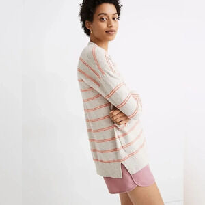 MADEWELL NWOT Textured Stripe Bradley Cardigan Sweater in Heather Oat
