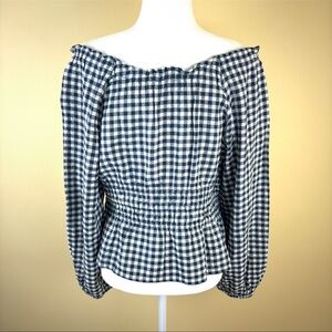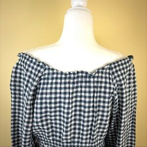 MADEWELL Navy /White Checkered Off The Shoulder Peasant Cropped Ruffle Top (L)