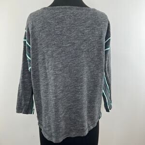 Madewell Nordic Gray Cotton Striped Tee Boxy Round Neck 3/4 Sleeve Pullover