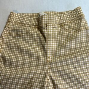 MADEWELL PULL ON SKINNY FLARE IN MINI CHECK PATTERN AUTUME GOLD PANTS SZ 28