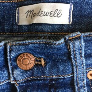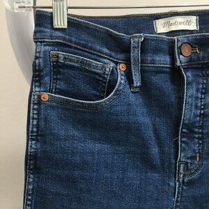 MADEWELL Petite 5 Pocket Logo Hardware Med/Dark Wash 10" High Rise Skinny Jeans