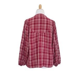MADEWELL Plaid Balloon-Sleeve Button-Front Top in Red/White XS