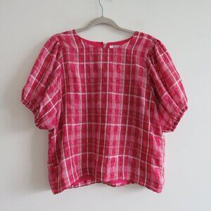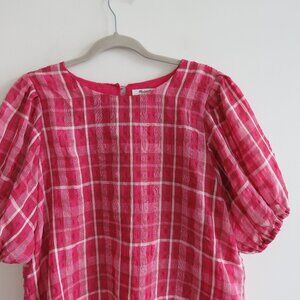 MADEWELL Plaid Puff Sleeve Top in Azalea Plaid Boho Preppy - Size M