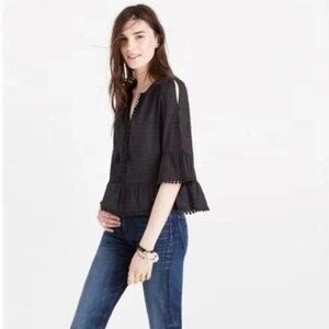 MADEWELL Pompom-trimmed Swiss-dot Cotton Blouse Size XXS.