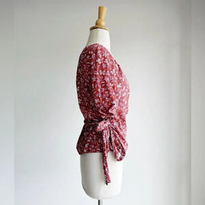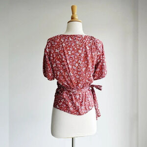 MADEWELL | Puff-Sleeve Wrap Crop Top in Batik Vine | S