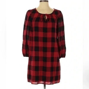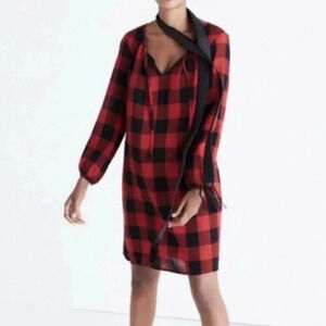 MADEWELL Red & Black Buffalo Plaid Wool Blend Tie Neck Shift Dress Size XXS