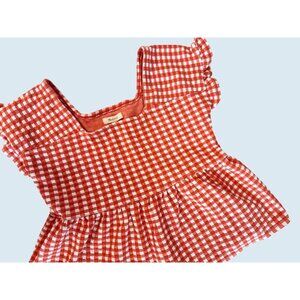 Nice top by Madewell. Red & white gingham print allover. Pullover. Ruffle sleeves. Square neck. Peplum waist. 60% polyester / 40% cotton. Size XS. Pre-owned and gently worn in really great condition!