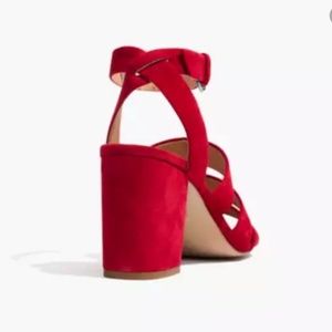 MADEWELL Red crimson triple-strap block heel sandal. Size 8.
