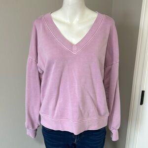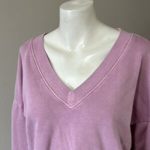 MADEWELL Resourced Cotton V Neck Sweatshirt Purple Puff Sleeve Sz M