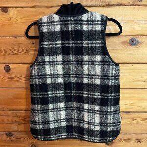 Woolly plaid lends rustic appeal to a cozy, reversible vest that makes the perfect top later through autumn and winter. The two-way zipper offers versatile ways to wear it, and you can flip it inside out for a totally different look.