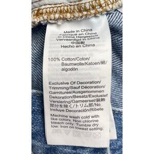Medium blue wash mini skirt, zip fly, waist tie, front and back pockets. Rigid Denim Straight.