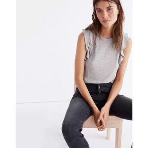 MADEWELL Ruffle Tank Top in Metallic Cloud.