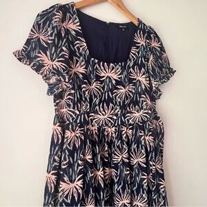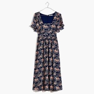 MADEWELL Ruffle-Sleeve Midi Dress in Oasis Palms SIZE XS