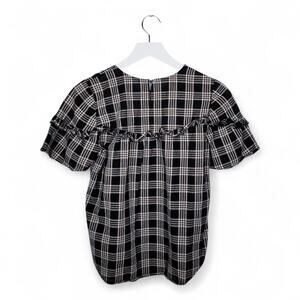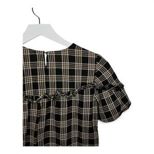MADEWELL Ruffle-Yoke Top in Metallic Plaid - Size XS