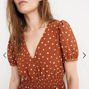 MADEWELL SMOCKED WAIST MINI POLKA DOT DRESS