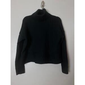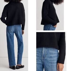 MADEWELL SWEATER MERINO WOOL BLEND CROPPED KNIT BLACK SADLER TURTLENECK PULLOVER