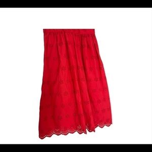 MADEWELL Scalloped Eyelet Midi Dress Short Sleeve Prairie Color Red