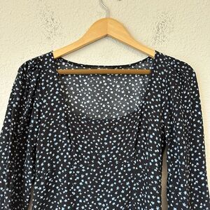 MADEWELL Seamed Long Sleeve Mini Dress in True Black Ditsy Floral Sz 2 W9220