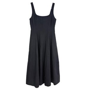 MADEWELL Seamed Squareneck Midi Dress 8 Jet Black A-Line Fitted Bodice NWT B38