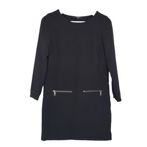 MADEWELL Sheath Black Dress Zipper Front Pockets Women XS Round Neck 3/4 Sleeves