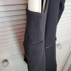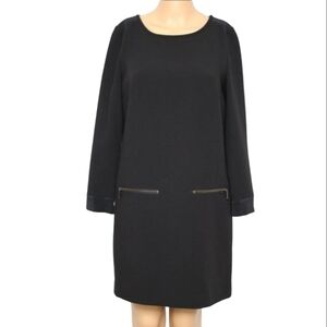 MADEWELL Sheath Black Dress Zipper Front Pockets Round Neck 3/4 Sleeves