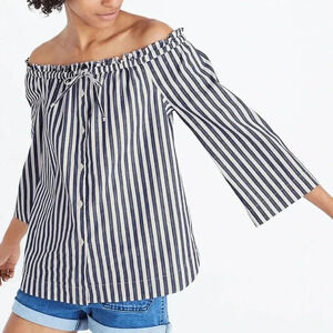 MADEWELL Shimmer Stripe Off-the-Shoulder Top Size Medium