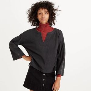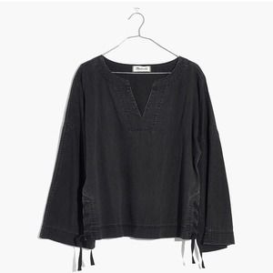 MADEWELL Shirt Womens Small Gray Denim Side Lace Top Sloan Black NWT