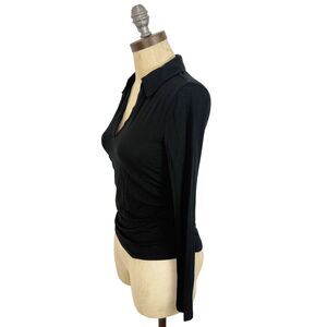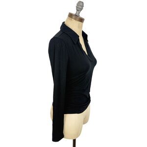 MADEWELL Side-Cinch Long-Sleeve Polo Top XS Slim Fit Jet Black NWT B53