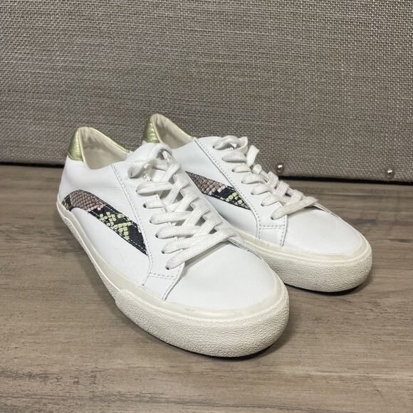MADEWELL Sidewalk Low Top Sneakers Leather Snake Print Size 7.5 Minimalist White