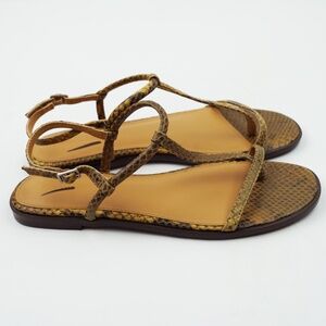 Coming in snakeskin-stamped leather, these simple thong