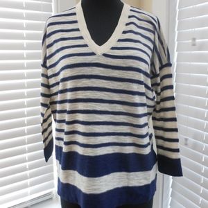 MADEWELL Slub V-Neck Sweater in Stripeblock XS