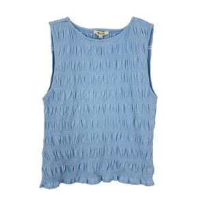 MADEWELL Smocked Boatneck Tank S Light Pool Blue Slim Fit Stretch NWT B45