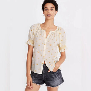 MADEWELL Smocked Button Up Top in French Daisies