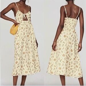 MADEWELL Soren Silk Floral Cutout Tie Front Smocked Midi Sundress
