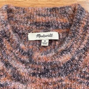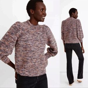 MADEWELL Space Dyed Eaton Knit Sweater Sz Medium Puff Sleeve Marled Plum Cropped
