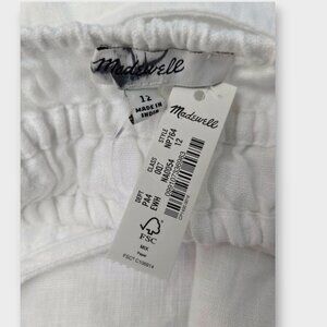 MADEWELL Square-Neck Mini Dress in 100% Linen White 12 NWT