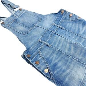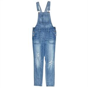 MADEWELL Stretch Denim Ripped-Knee Skinny Overalls in Faded Blue Wash Size S