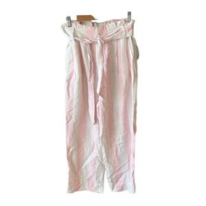 Pink-and-white stripes and a breezy linen blend make these pleated paperbag-waist pants the ultimate warm-weather style.