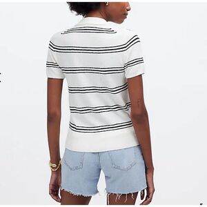 MADEWELL Sweater Women XS Polo Knit Tee NEW Ivory Stripe Short Sleeve NQ341