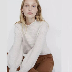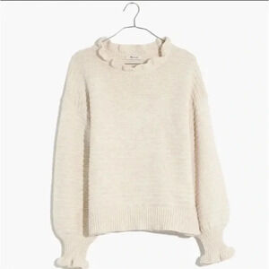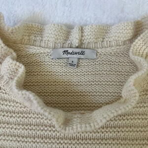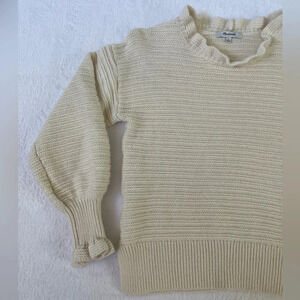 MADEWELL Sz S Cream Ruffle-Neck Pullover Sweater Cotton/Merino Wool Girly