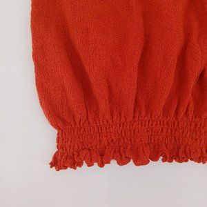 MADEWELL Sz S Frill Smock Textured Drawstring Top Round Neck Cotton Minimalism