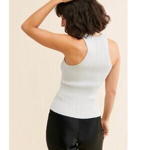 Elevate your wardrobe with this sophisticated and stylish silver metallic knit tank top from Core MadeWell! This cutaway tank is perfect for adding a touch of sparkle to any outfit.