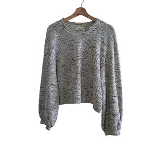 MADEWELL TEXTURE & THREAD BUBBLE SLEEVE TEXTURED LONG SLEEVE TOP WHITE BLACK