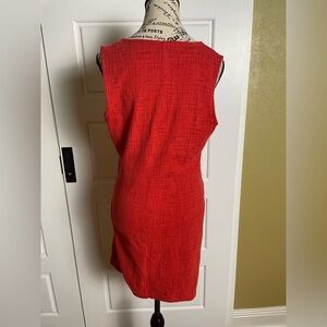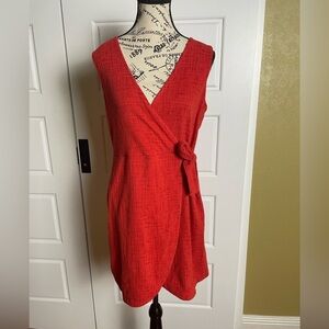 Madewell dress, wrap dress, red dress, sleeveless dress, summer dress, casual chic, tie-waist dress, textured fabric, V-neck dress, mini dress, lightweight dress, warm-weather fashion, day dress, versatile dress, trendy dress, effortless style, women's fashion, pre-owned Madewell, brunch outfit, weekend wear, comfortable dress, flattering fit, modern design, summer essential, fashion-forward, everyday dress.