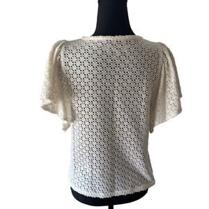 MADEWELL Texture & Thread Ivory Eyelet Flutter Sleeve Top Size Medium