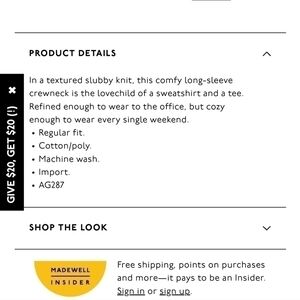 MADEWELL Textured Crewneck Gray Sweatshirt, sz Small