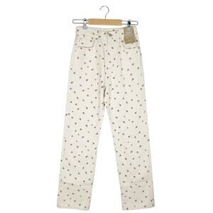 Madewell straight jeans, floral printed denim, vintage high rise, cottagecore feminine denim, minimalist spring outfit, daisy floral pants, quiet luxury casual style, soft neutral jeans, everyday capsule wardrobe piece, Parisian chic denim, romantic core outfit, spring brunch style, retro high waist jean, ecru neutral pants, laid-back feminine streetwear.