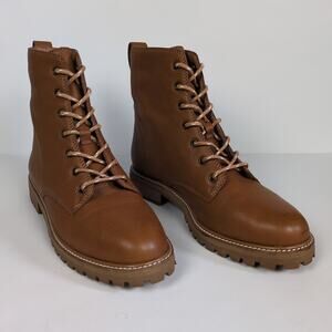 MADEWELL The Clair Lace-Up Boot Leather English Saddle Brown Lug Sole Women's 7