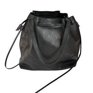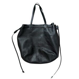 MADEWELL The Drawstring Transport Tote Saddle Bag Purse Black Leather Women's