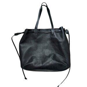 Great authentic MADEWELL The Drawstring Transport Tote shopper shoulder bag purse in Black leather. Brass hardware. Drawstring closure. The leather interior has one zippered pocket. Leather handles. In excellent pre-owned condition as shown. Sold out style.